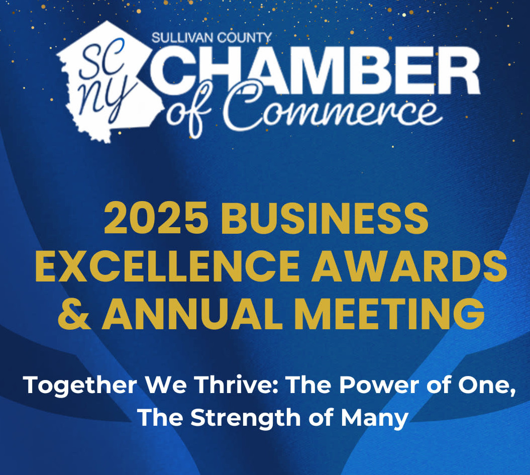 You are invited to the Sullivan County Chamber of Commerce’s 2025 Business Excellence Awards & Annual Meeting on Thursday, November 13, 2025, at 5:30 PM at the Hurleyville Performing Arts Centre. An evening of recognition, connection and celebration.